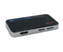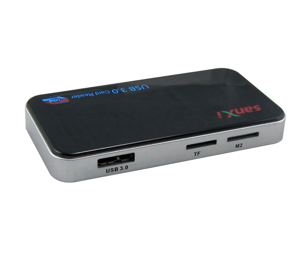USB3.0多合一读卡器 支持卡槽 MS,CF,M2,SD,SM/XD,T-FLASH 支持同时运行多个USB 3.0,USB 2.0和USB 1.1设备 最高速度可达到5Gbps 尺寸:93.77*48.44*12.63mm 包装:吸塑包装 MOQ:1000个