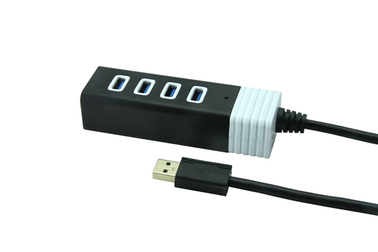 笔记本,超级本和平板计算机等而设计的4接口USB 3.0集线器。产品简约时尚,USB接口采用横向布局人性化设计,使插入的设备互不冲突。产品功耗低,并具备过流保护功能,能同时支持4个UBS 3.0设备,是您办公娱乐好助手。